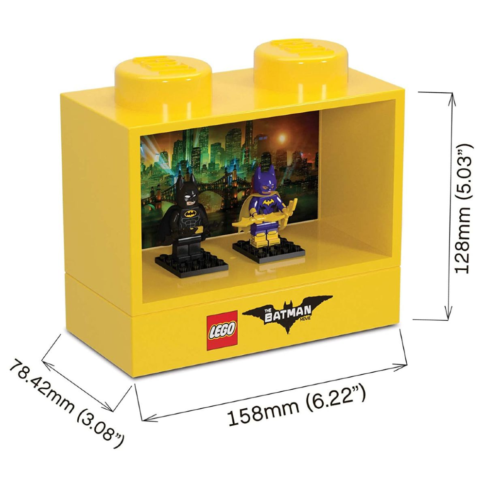 La pantalla mide aprox. 16.5 Cm de largo x 7.6 Cm de ancho x 15.2 Cm de alto (Aprox) con un área de visualización capaz de exhibir tus minifiguras LEGO Batman favoritas o pequeñas personajes.