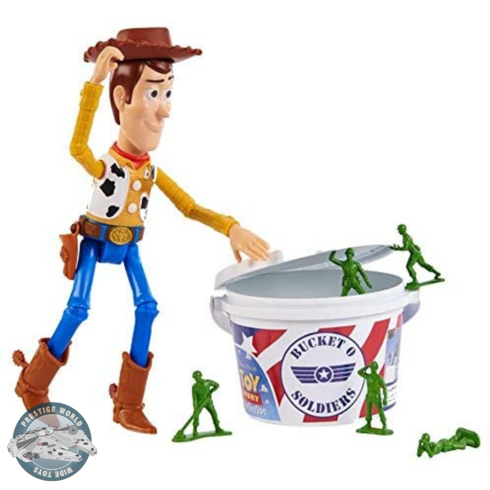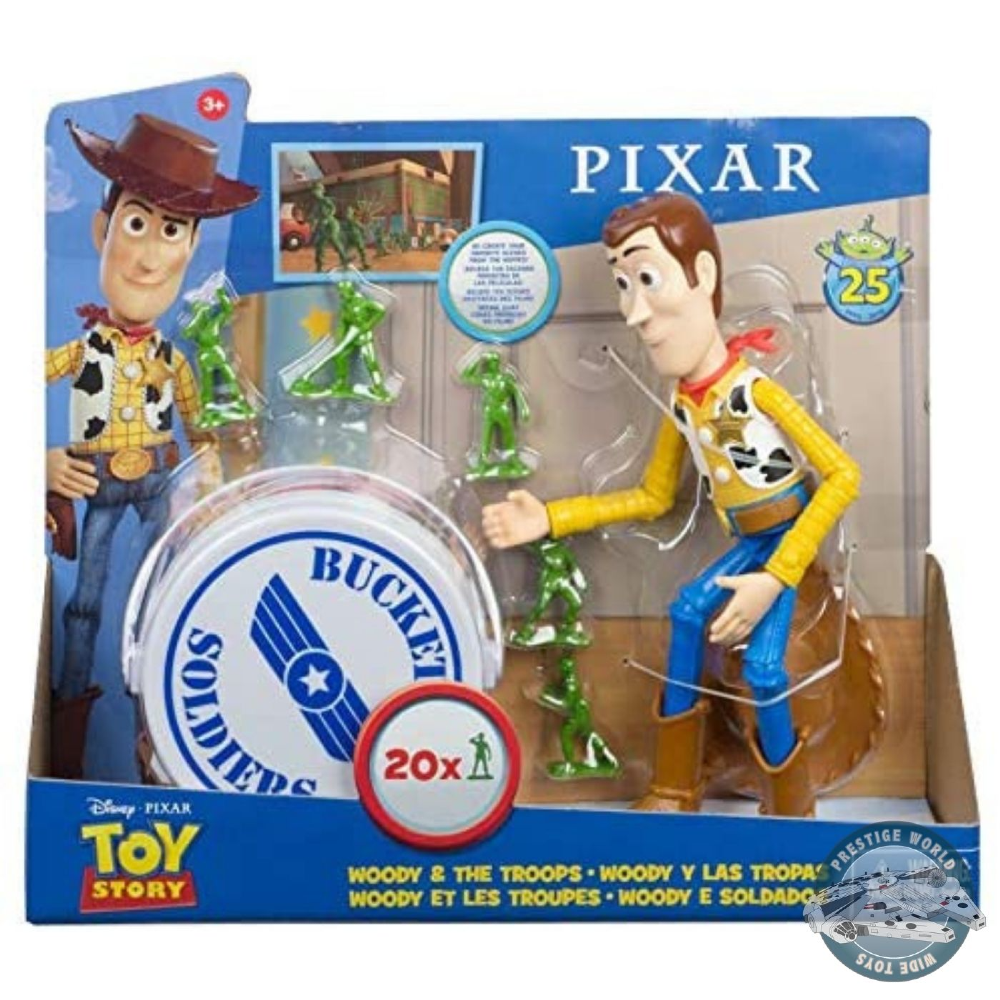 Este doble playset Toy Story completo viene con una figura del Sheriff Woody altamente poseable en su atuendo característico y expresiones icónicas. A su mando hay un pelotón de veinte soldados del ejército. ¡Estas figuras y su balde de transporte especial son únicos. Este doble Playset de figuras son un gran regalo para los fanáticos de Toy Story.