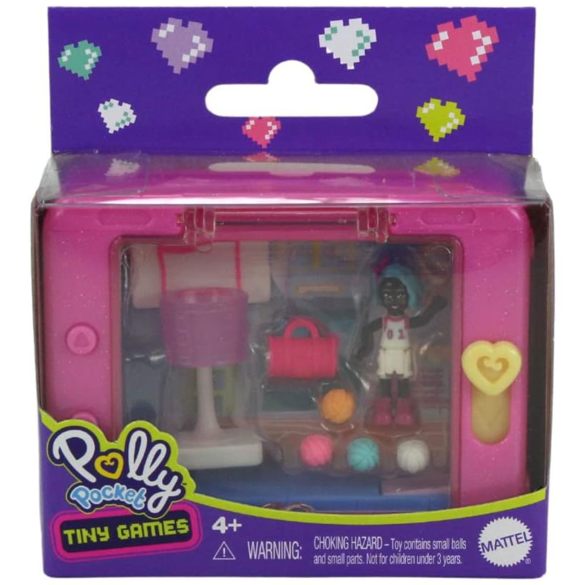 Carga la micro Polly y los accesorios en tu juego y utiliza toda tu destreza para encestar. También podes utilizar a Tiny para jugar con otras muñecas de la colección de Polly Pocket.